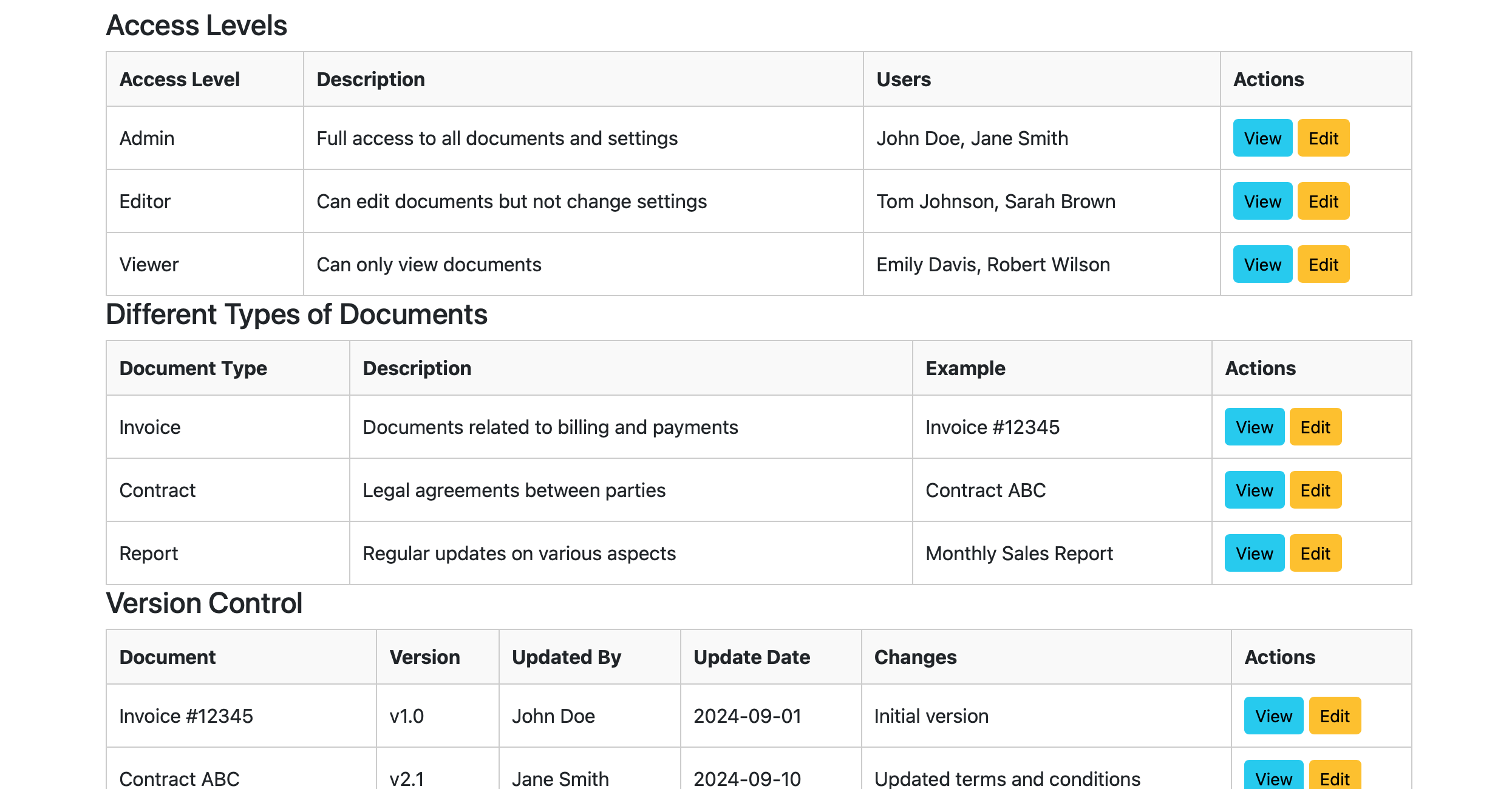 Maintain document versions with detailed change history.