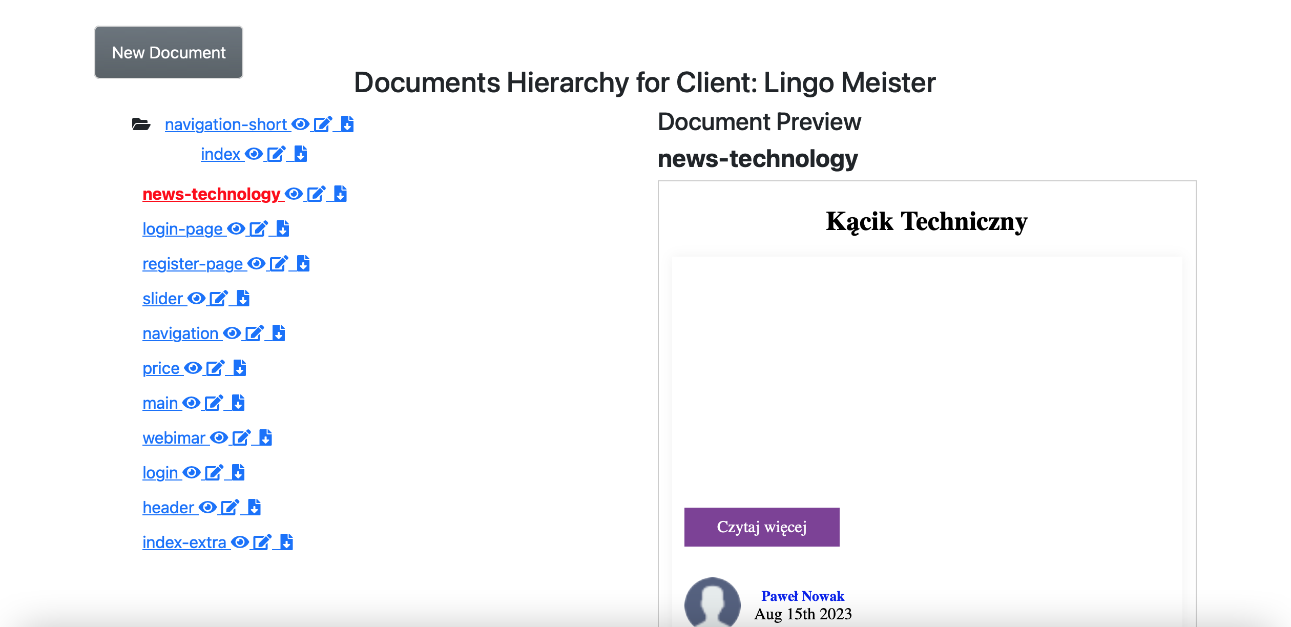 Documents may be stores in hierarchy system that allows to better order beside assign to project/ client/ employee etc...