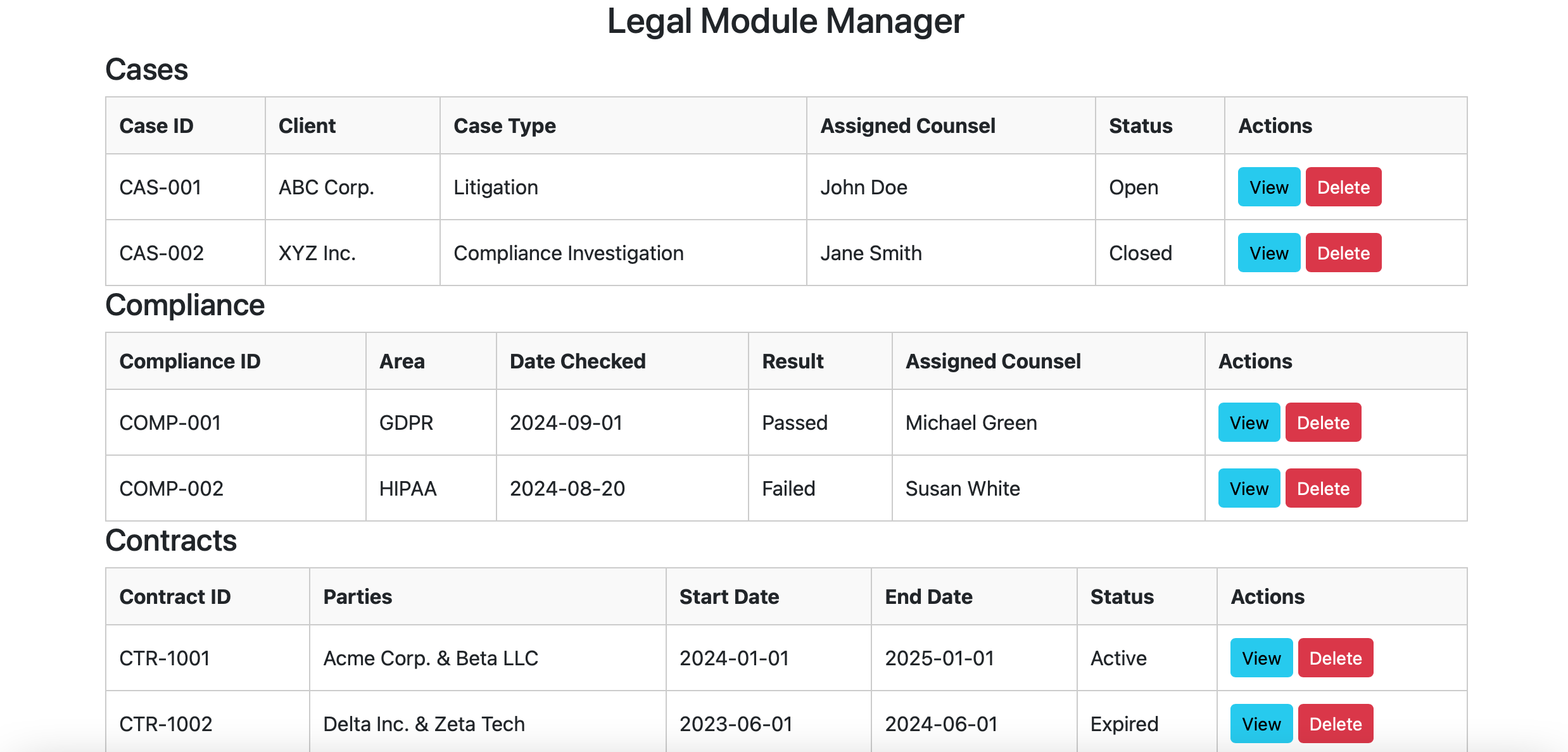 The Legal Module in Robo Connector provides advanced tools for managing legal cases, contracts, compliance, and document automation.